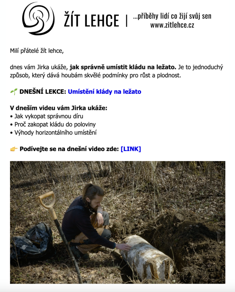 PDF manuál (43 stran) obsahuje veškeré informace z videí v přehledné textové podobě doplněné o fotografie. Je to skvělý doplněk k videím, který vám umožní rychle najít konkrétní informace bez nutnosti procházet celé video. Mnoho studentů si manuál tiskne a bere s sebou přímo k houbovým kládám jako praktickou příručku.